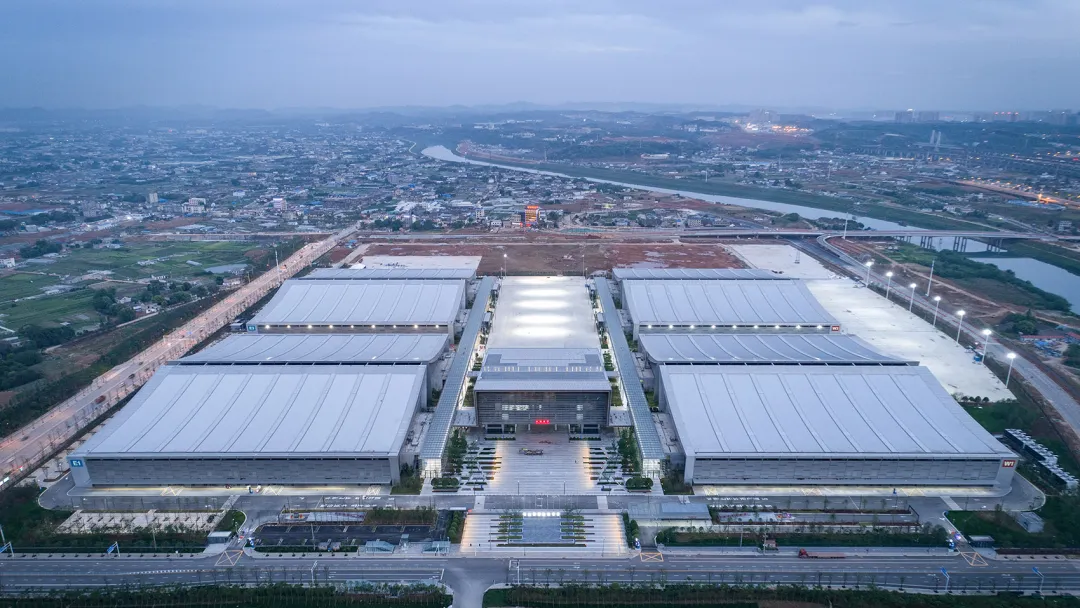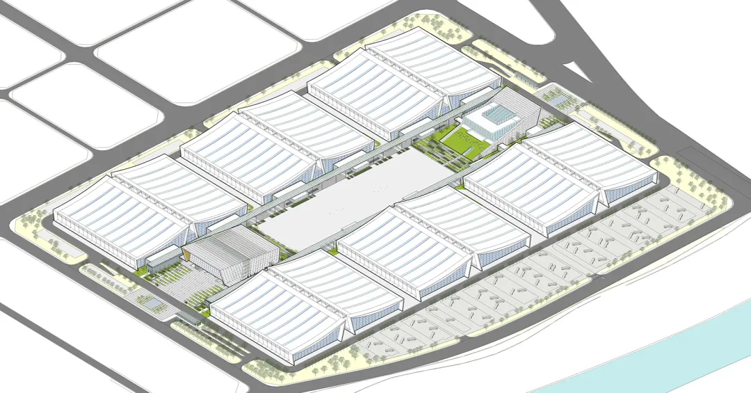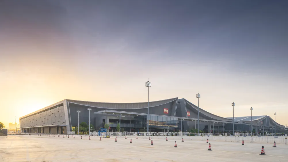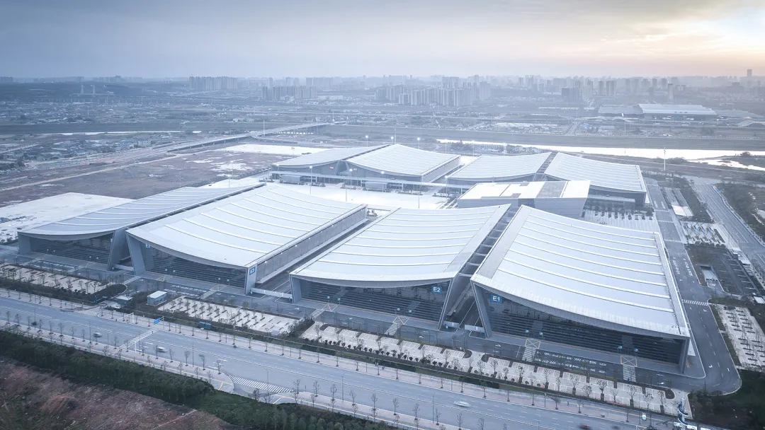 长沙国际会展中心位于长沙市长沙县黄兴镇浏阳河东岸,占地约53.3公顷,总建筑面积44.5万m²,其中室内展览部分建筑面积17.8万㎡,室外展览面积8.5万m²。