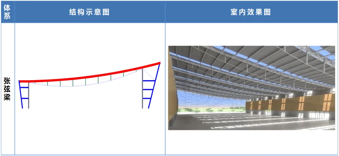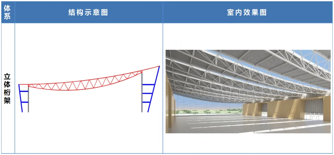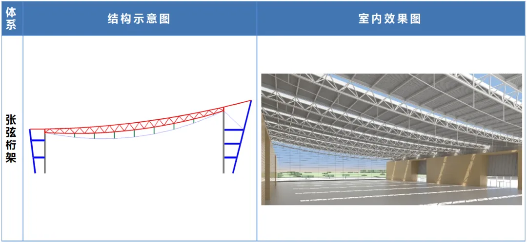 本案结构设计师在排除了型钢式劲性索方案之后,又考虑了多种方案,最终在立体桁架式劲性索、下凹形弦支梁和下凹形弦支桁架三种屋盖结构体系中选择。建筑师也非常用心地渲染了室内场景,对每一种方案的室内效果进行推敲。