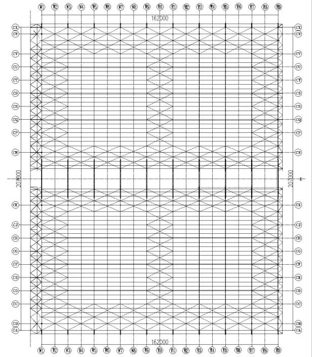 为了保证屋盖面内刚度,屋盖面内设置“日”字形柔性封闭交叉支撑。柔性支撑采用φ40高钒索,其材质与弦支梁下弦拉索同。