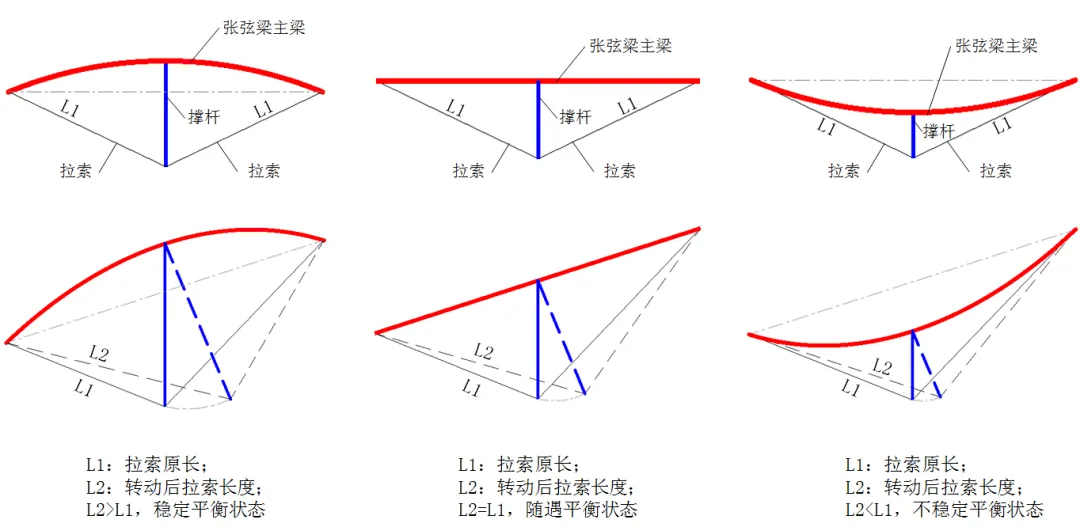 为了说清楚这个问题,我们需要对不同形态弦支梁的稳定性做一个梳理。这里有一个核心判断标准: