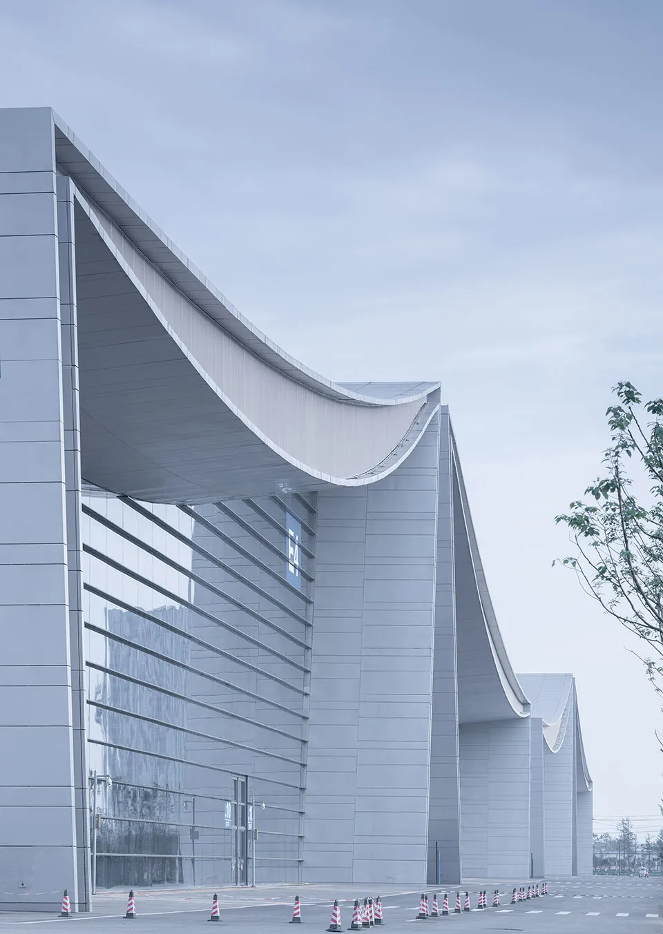 长沙国际会展中心包括南北登录厅、展馆、连廊、室外展场四个部分。建筑师从中国传统山水画卷中提取了潇湘云雨、万千气象的神韵,通过展厅独特的屋面造型予以呈现。