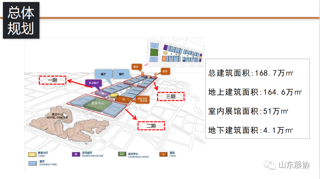 济南黄河国际会展中心位于济南新旧动能转换起步区,由展览中心、会议中心和酒店中心三大板块组成。建成后展馆总建筑面积约168.7万㎡,净展览面积达51万㎡,是国内室内展馆面积最大、全球综合规模最大的会展中心,将打造为全球首座“会展+产业”融合发展的经济园区。