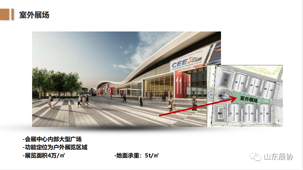 室外展场:会展中心内部大型广场,展览面积约4万㎡ ,地面承重:5t/㎡,可承接室外大型演唱会、摆放大型机械设备、车辆竞技表演等。