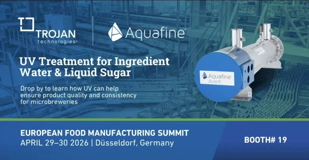 4月29-30日,特洁安旗下品牌 Aquafine 亮相 European Food Manufacturing Summit,展位号 #19。我们向欧洲食品行业展示了 UV 处理工艺水与液态糖 的前沿方案——从微酿啤酒到大型食品工厂,Aquafine 的紫外技术确保每一滴工艺水的品质与一致性,守护"从农田到餐桌"的食品安全。