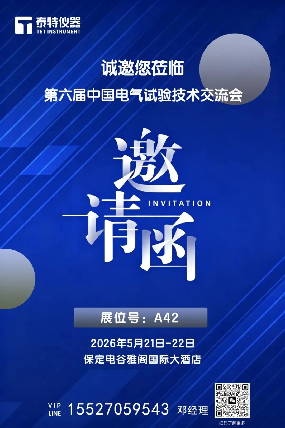 相约展会・聚力前行|第六届中国电气试验技术交流会,泰特仪器A42 展位静待莅临