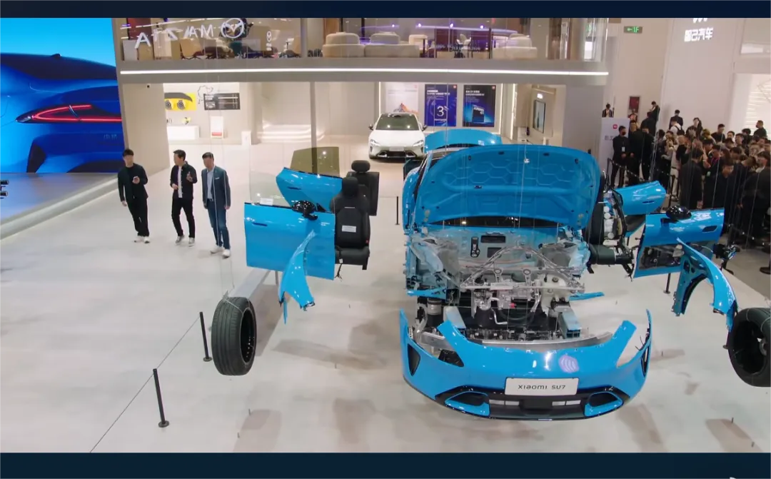 本次展会现场,小米还展示了完整拆解的小米SU7车身,整车结构、内外零部件完整对外展示,直观呈现了车辆的车身设计、用料结构与整车工程细节。