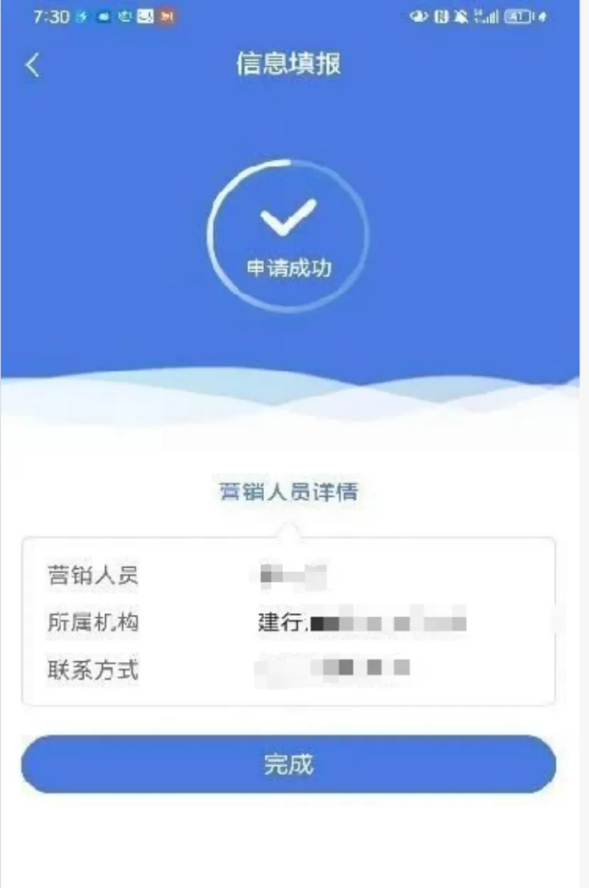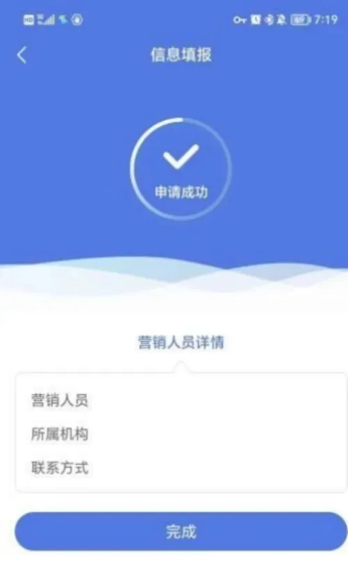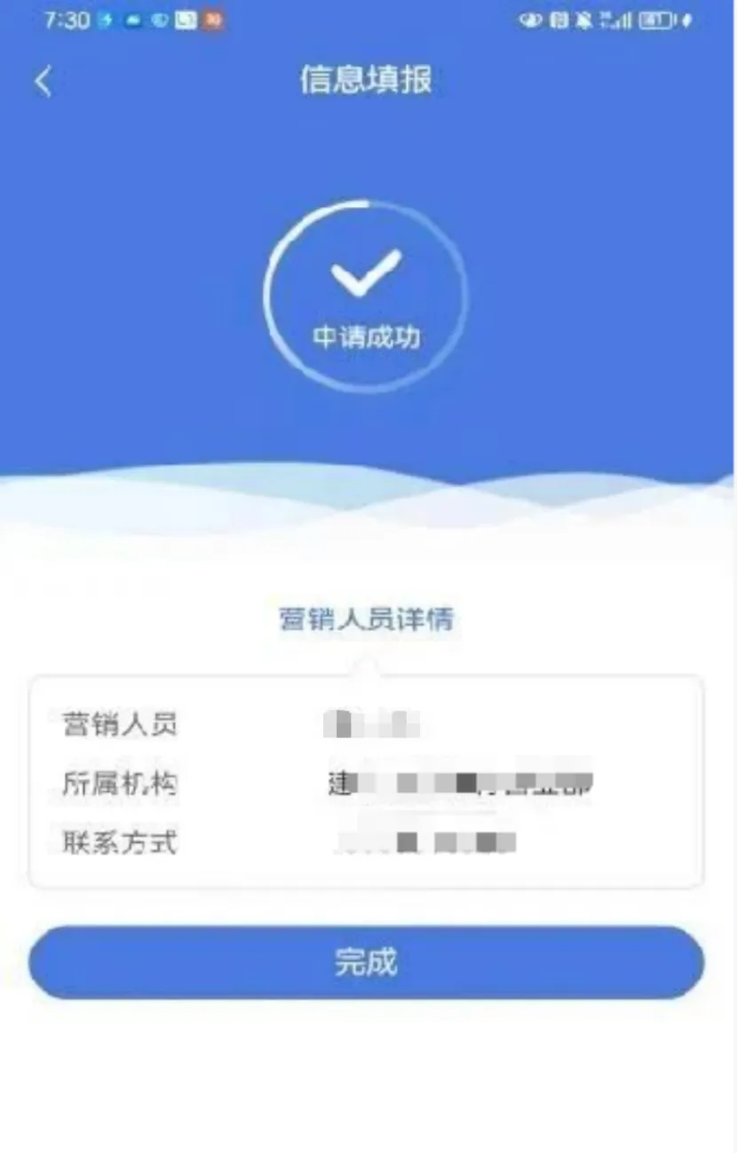 提交成功,显示对应营销人员信息