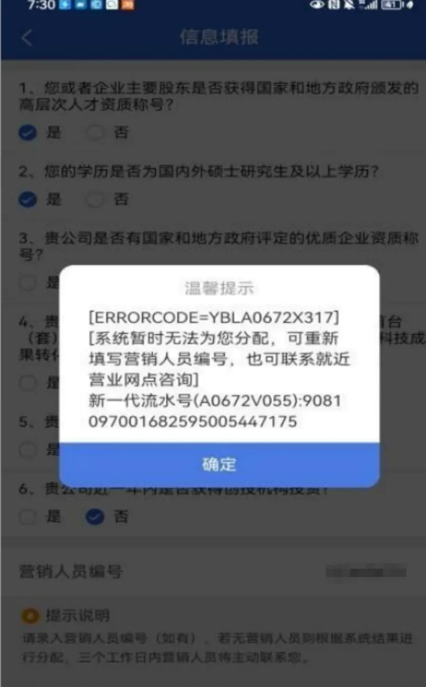 系统报错,提示重新填写或咨询网点