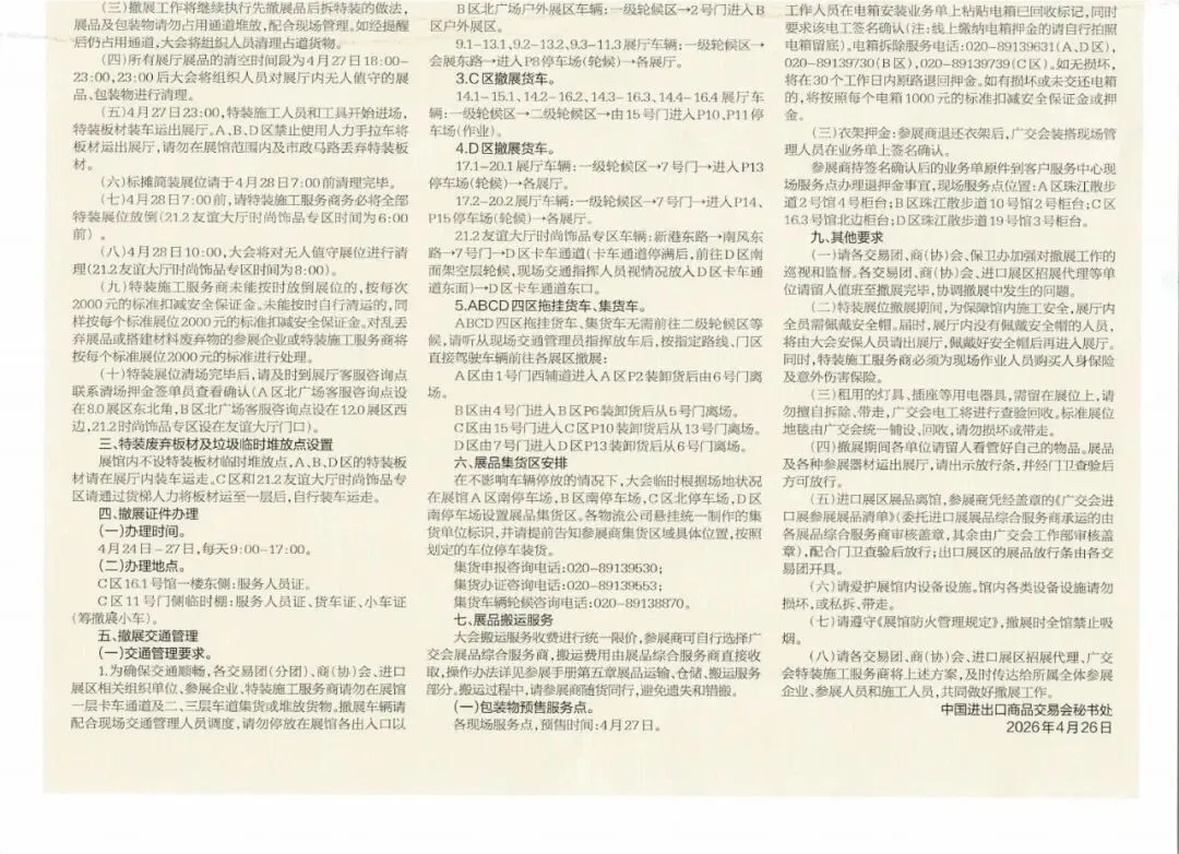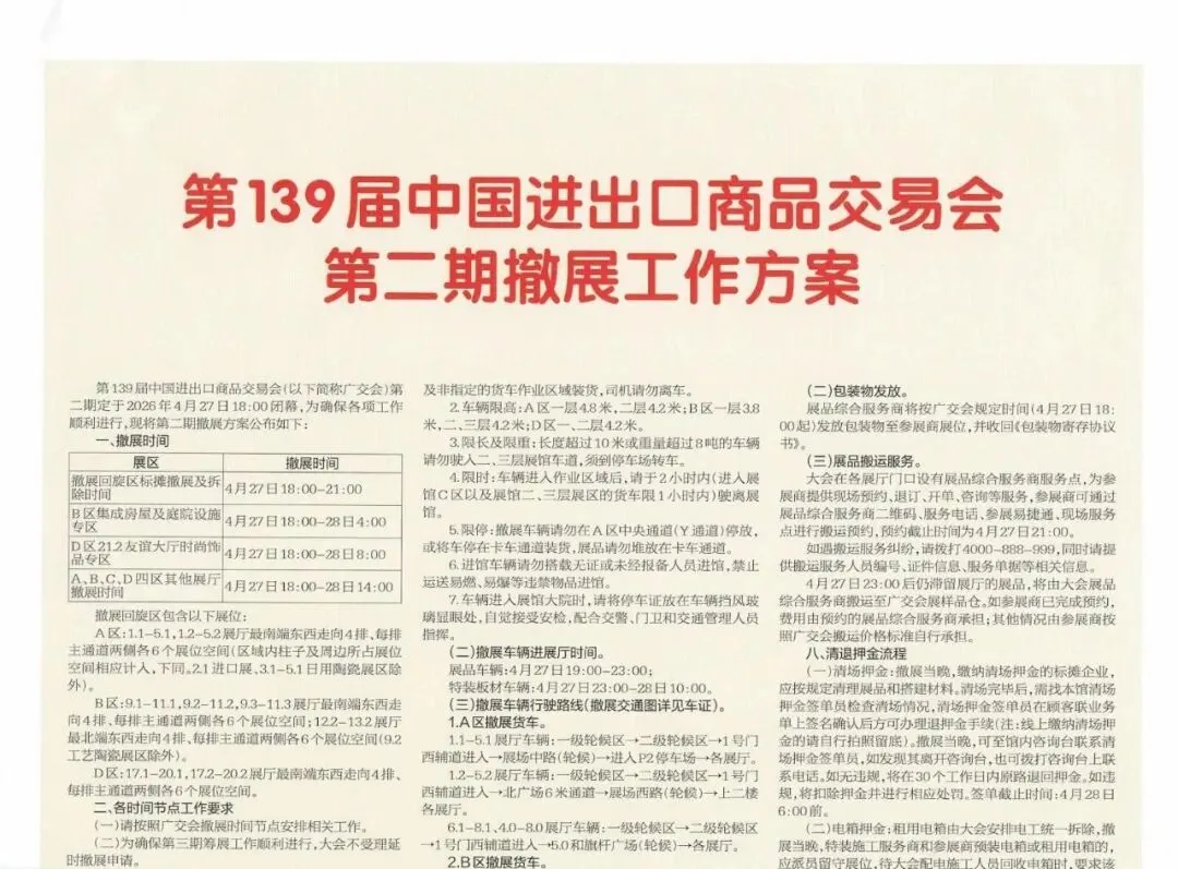第139届广交会第二期撤展工作方案