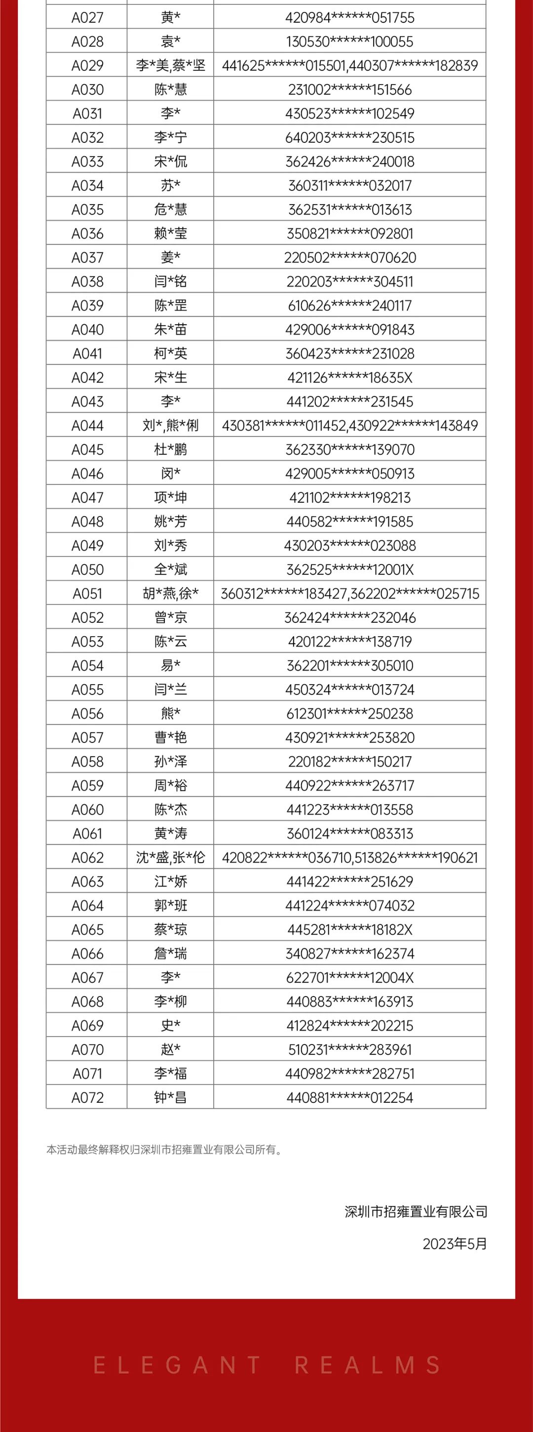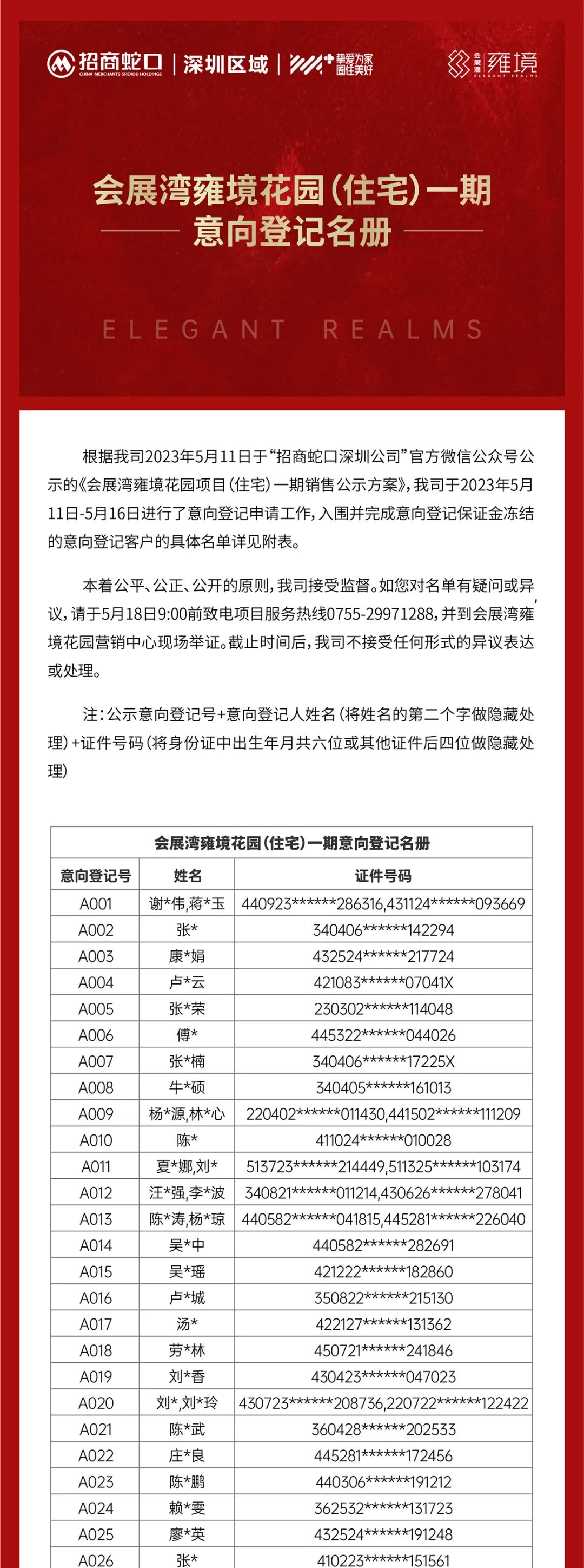 会展湾雍境花园(住宅)一期 意向登记名册
