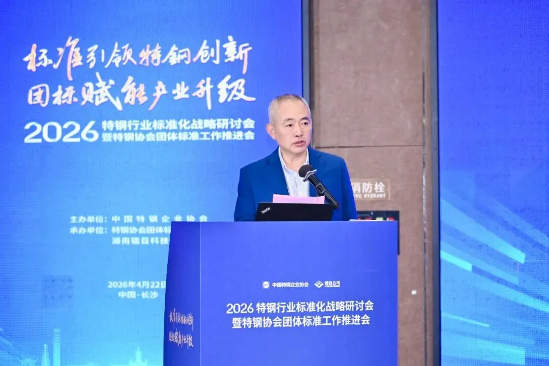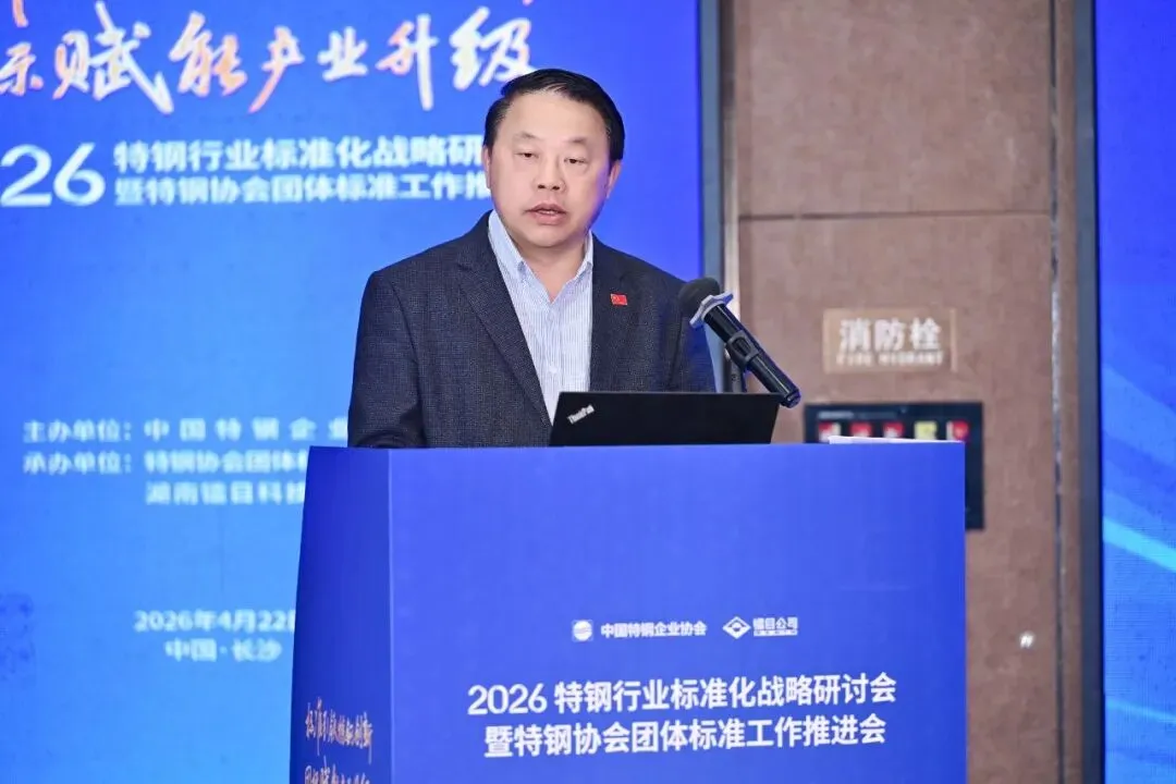 暮春四月,星城聚贤,共话标准,赋能发展。4月22日,2026年特钢行业标准化战略研讨会暨特钢协会团体标准推进会在长沙隆重召开。本次大会锚定特钢行业“十五五”高质量发展核心目标,系统研讨行业标准化战略实施路径,广泛凝聚产业共识,全力提速团体标准研制、应用与推广,以高标准引领产业转型升级,全面提升我国特钢产业发展质效与国际竞争力,本次会议取得圆满成功。