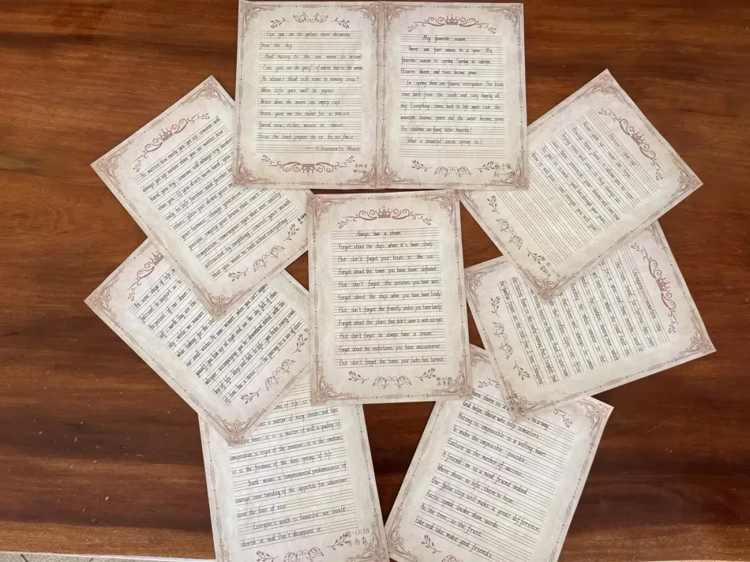 从最初的磕绊羞涩,到台上的自信挥洒;从手抄报上的第一行青涩英文,到扇面上那句工整的祝福——每一个蜕变都让英语组的老师们无比欣慰。正如一位学生在周记里写的:“谢谢英语,让我敢开口说梦。”
