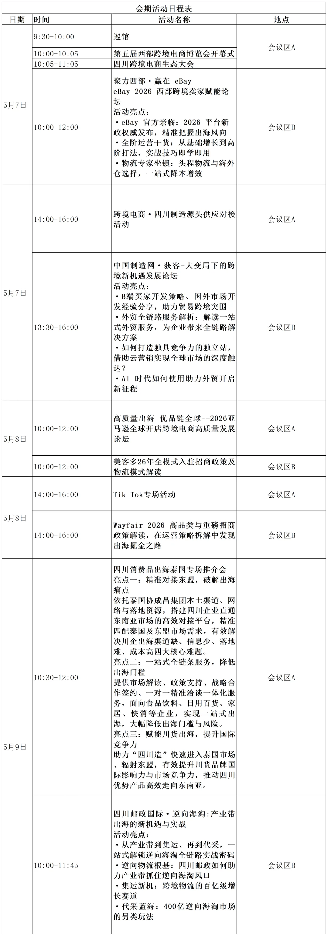 第五届成都西部跨境电商博览会定于 2026年5月7–9日 在 成都世纪城新国际会展中心 举办。