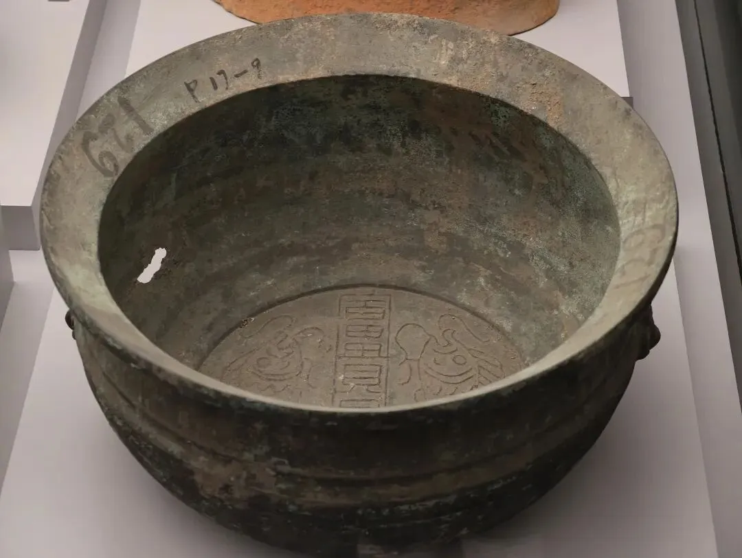 双鱼纹是汉代铜洗最常见的纹饰之一,寓意富贵有余。中央刻 “富贵昌宜侯” 铭文,生动展现汉人对富贵长存及圆满人生的向往。