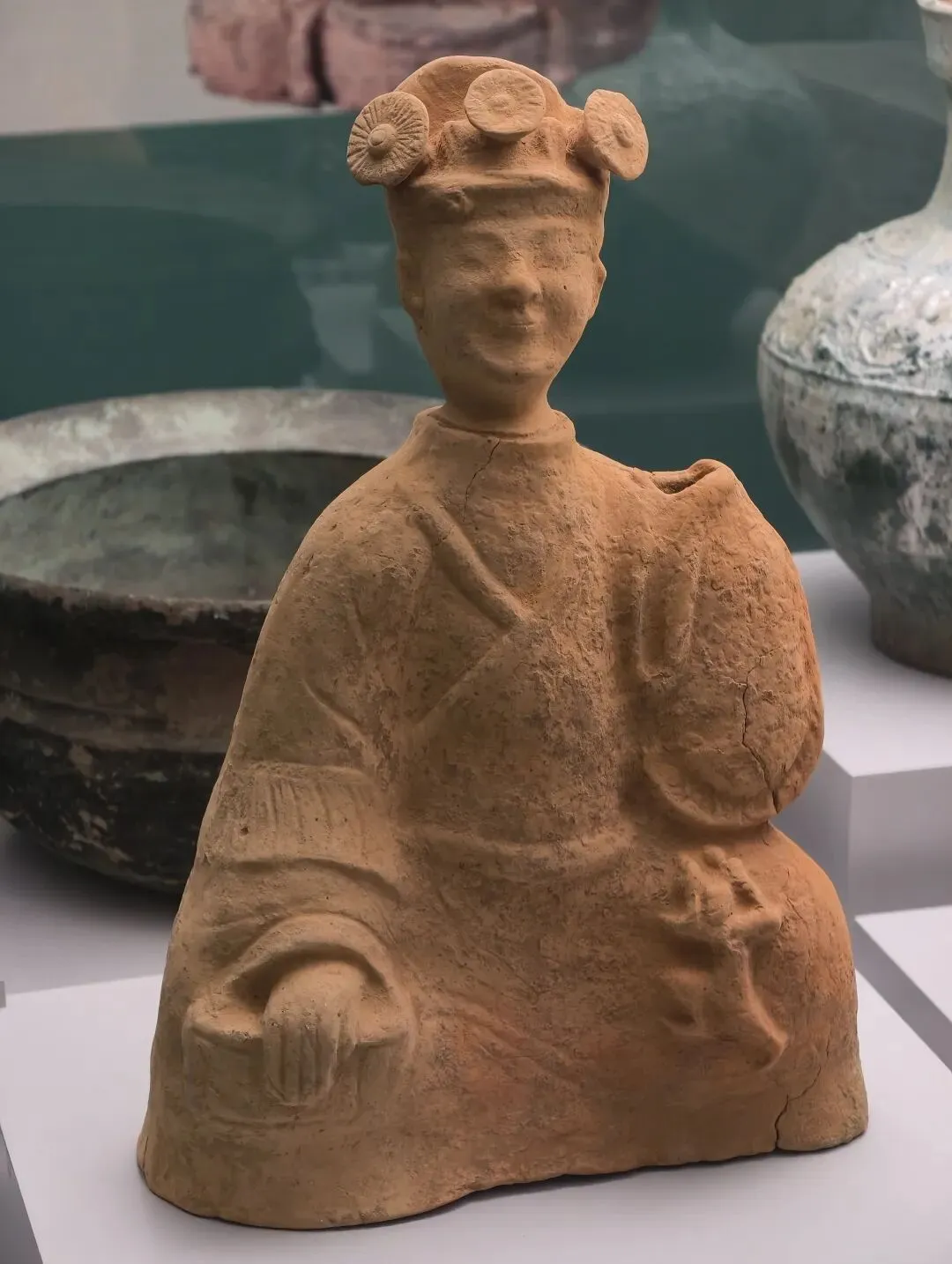 这类头上簪花、面容姣好的女俑,多于四川的东汉墓出土,极具地域特色,生动地反映汉代四川民间生活、服饰及民俗。