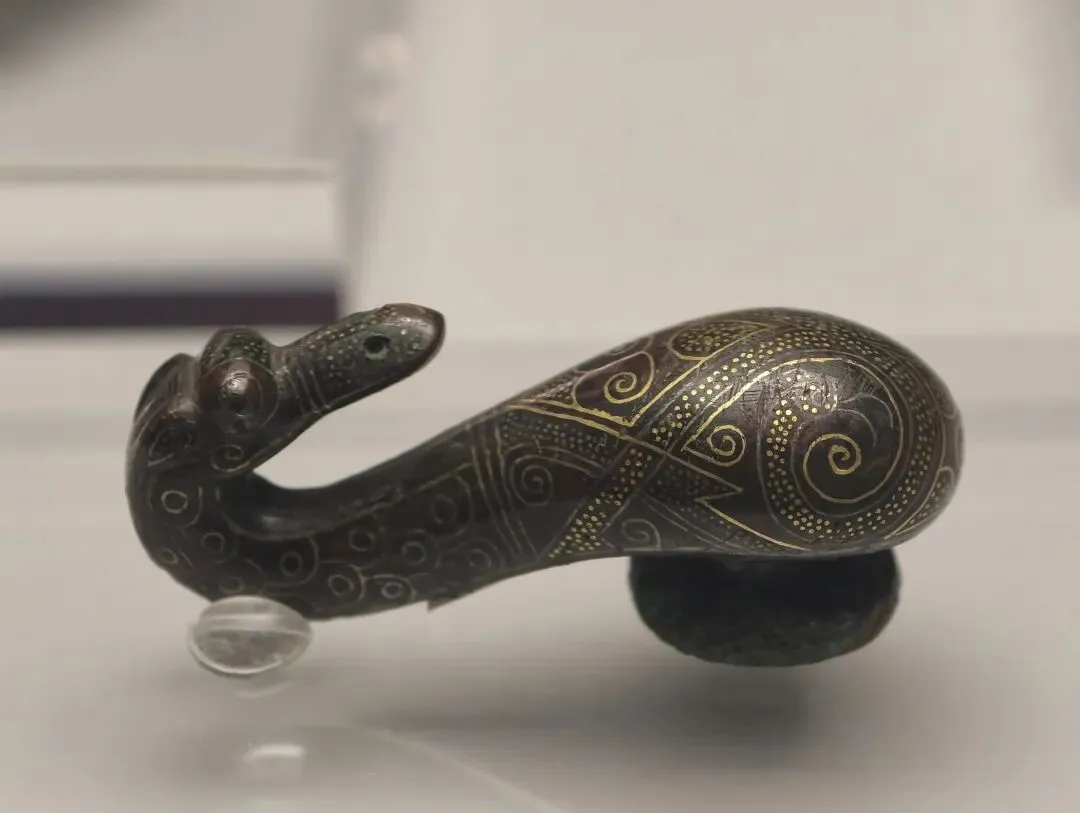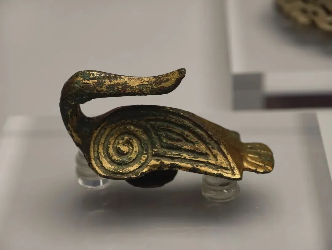 汉代中期以后,带钩向小型化发展,并流行禽鸟形样式。