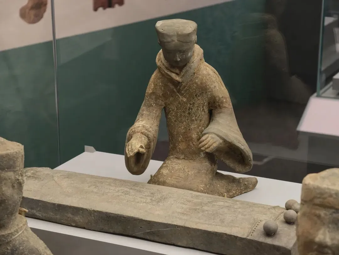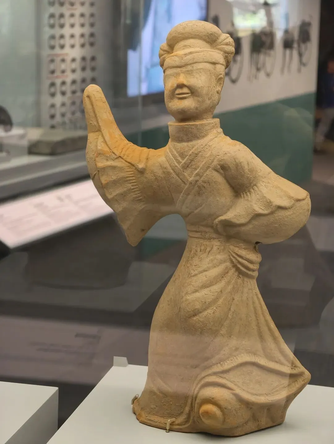 蹈俑常与击鼓说唱俑、吹笙俑等成组随葬在汉墓之中,再现了东汉民间宴饮百戏的热闹场景。