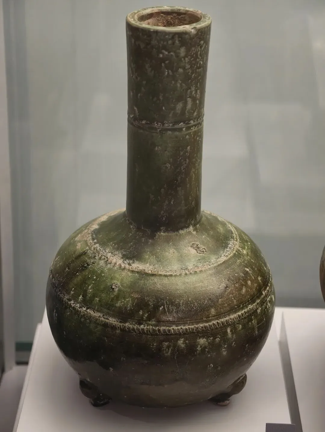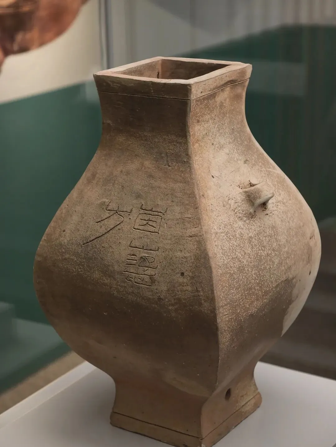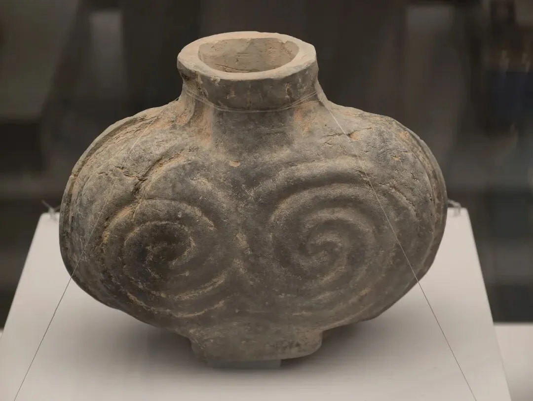 汉代陶扁壶造型、纹饰都是模仿铜、漆扁壶而来。到东汉时期,陶扁壶主要在北方地区的墓葬出土,均为盛酒的明器。