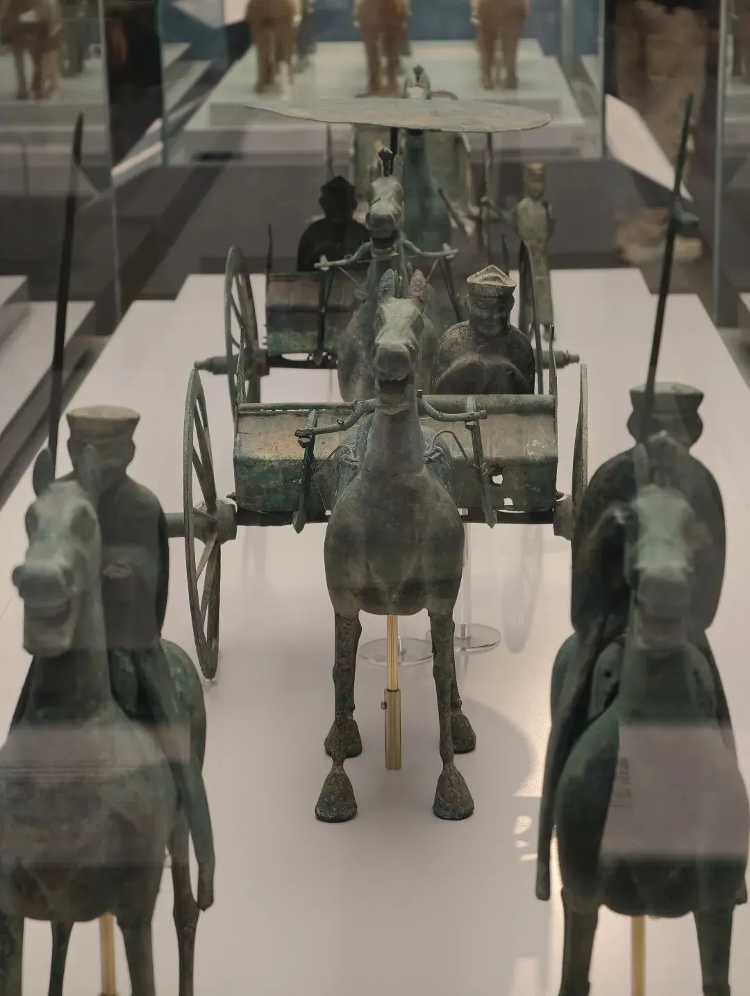 汉代车马出行不仅是重要的交通方式,更是社会地位与礼仪制度的具体表现。当时贵族官吏出行,依等级配备不同规格的车马,形成「宝马雕车」的壮观场面。轺车轻便,适于日常代步;安车平稳,多为贵族妇女乘坐;斧车和鼓吹车则彰显官威仪仗。车马规制严格,装饰精美,构建起一幅流动的等级画卷,汉代完备的礼仪制度与恢宏的时代气象可见一斑。