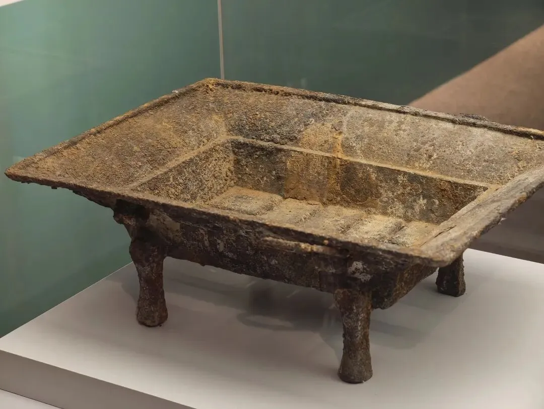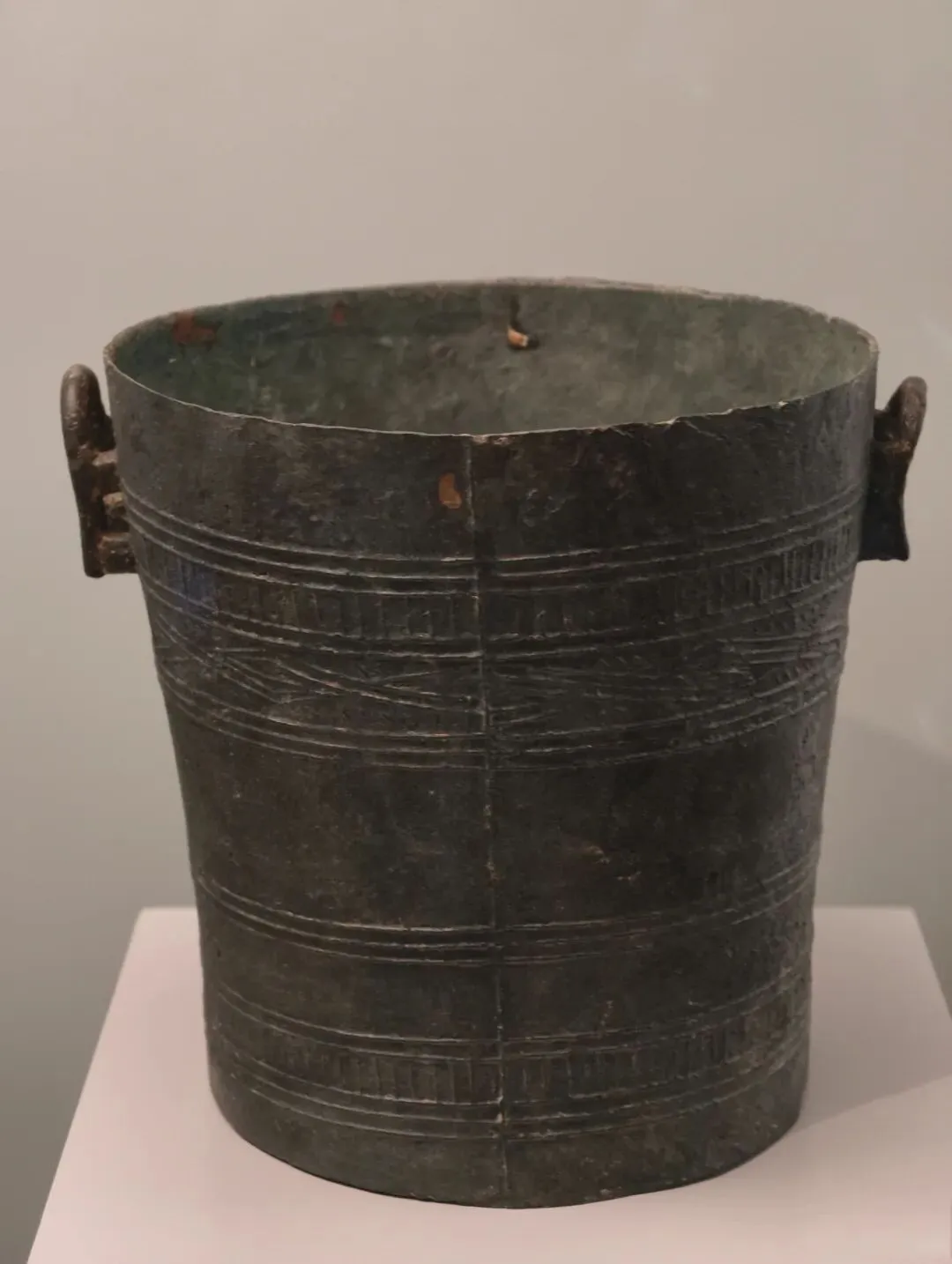 提筒极具岭南地方特色,是盛储器。出土时放在铜鉴内,筒口尚留有系藤残痕,筒内装黄牛骨、花龟和青蚯。