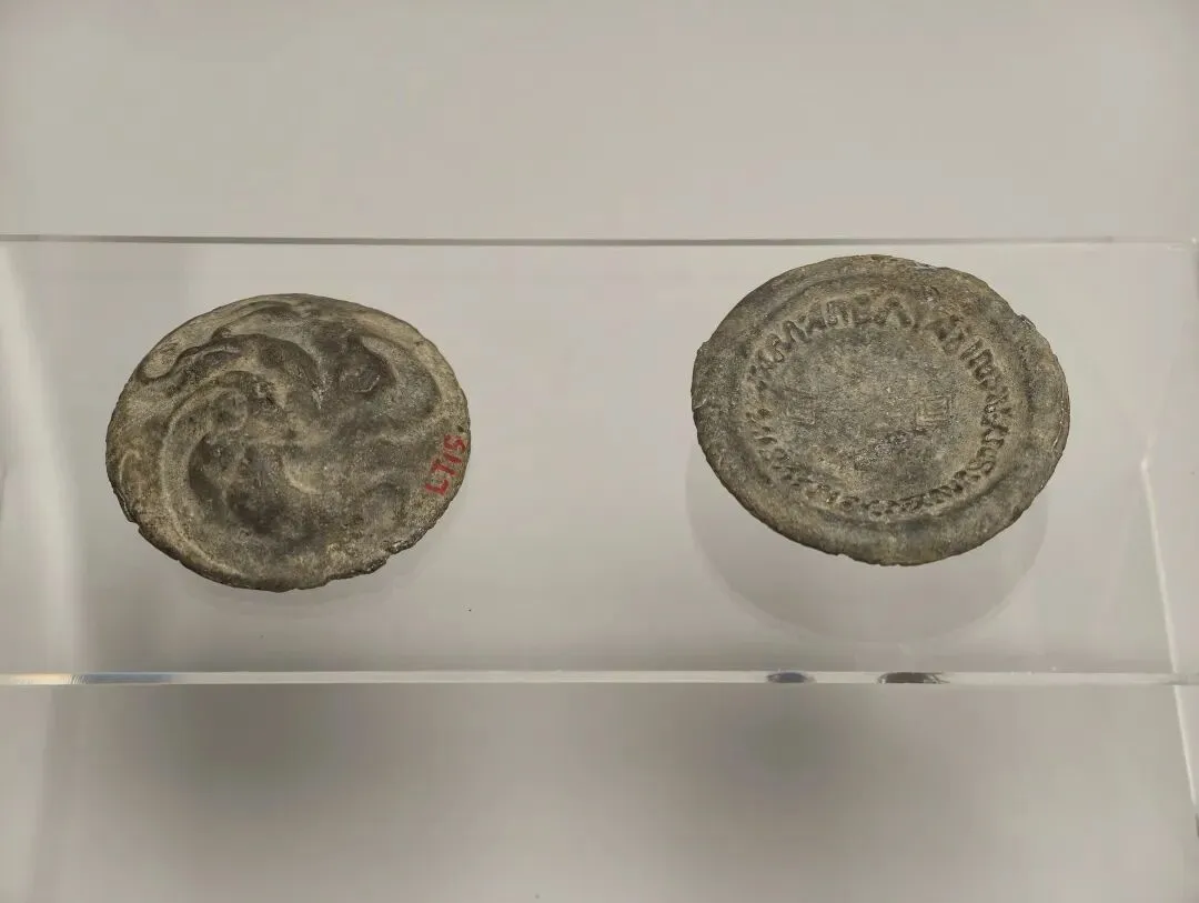安息是伊朗的古称。铅币正面凸出,有涡形纹;背面凹入,沿边缘列一圈凸起的外国铭文。据考证,这些铅幣源自晚期安息铭文钱币。但亦有研究指出这铅幣是汉武帝铸造的「白金三品」貨幣中的圆形龙纹幣。