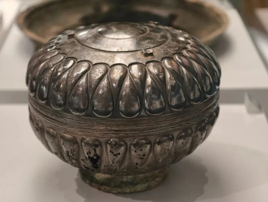 此盒的造型、纹饰与中国传统风格迥异,却与伊朗古苏萨城出土、刻有波斯王名字(前五世纪)的银器类同,可以确定这件银盒是目前已知广州地区发现年代最早的舶来品。