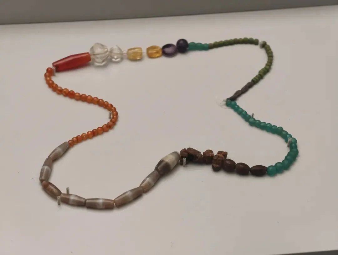混合串饰,由各种质地珠子组成。汉代珠饰质轻价昂,坚固易携,是经海上丝路从东南亚、西亚等地输入的主要商品,故海上丝路又被喻为「宝石之路」。