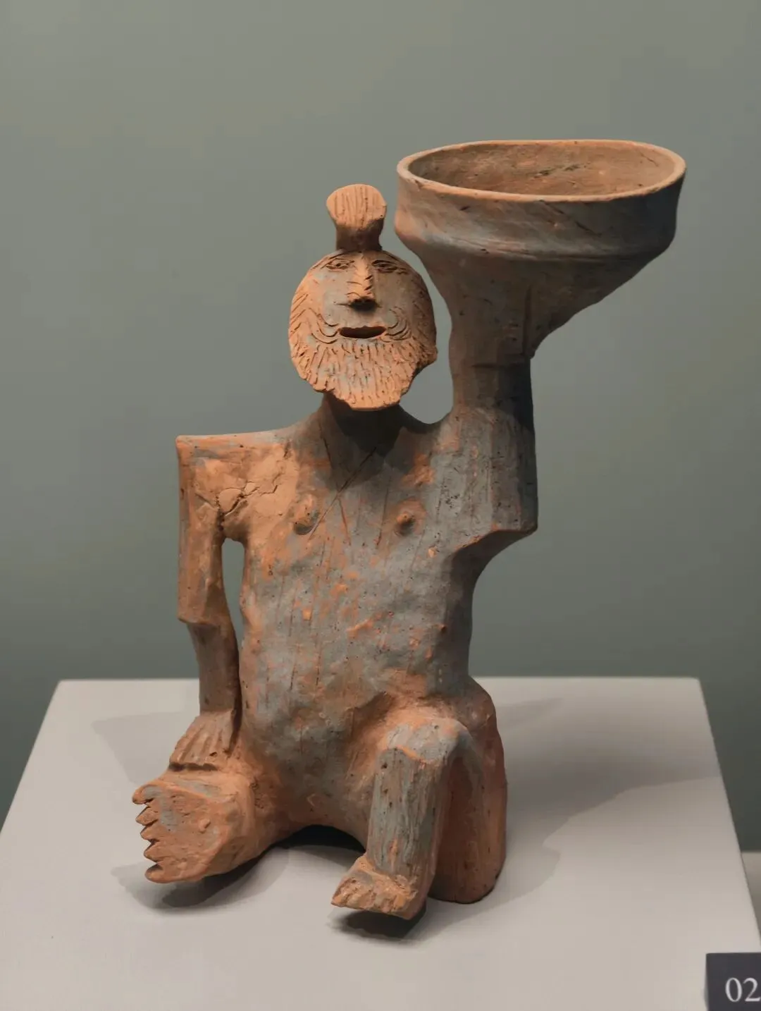 胡人俑座陶灯最早见于广州地区西汉中期墓葬,史载两汉时期,岭南地区普遍买卖与使用胡人奴仆,此类陶灯的产生是岭南与南海诸国文化交流的产物。