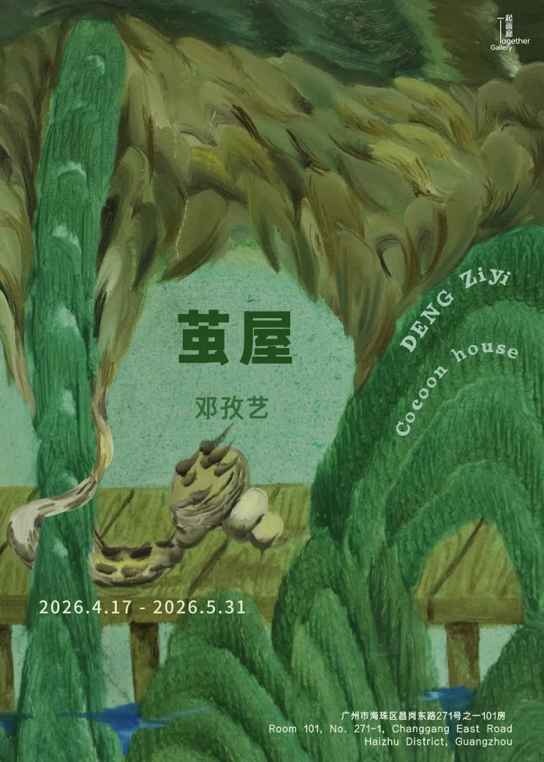 邓孜艺,1999出⽣于四川宜宾,2025毕业于四川美术学院油画系,获硕士学位,现工作⽣活于重庆。她近期参与的展览有:“小事发生了!”,一起画廊,广州,2025等。她近期的个展有:“茧屋”,一起画廊,广州,2026。Deng Ziyi was born in Yibin, Sichuan Province in 1999. She will graduate from the Oil Painting Department of Sichuan Fine Arts Institute in 2025, obtaining a master's degree, and currently resides in Chongqing.