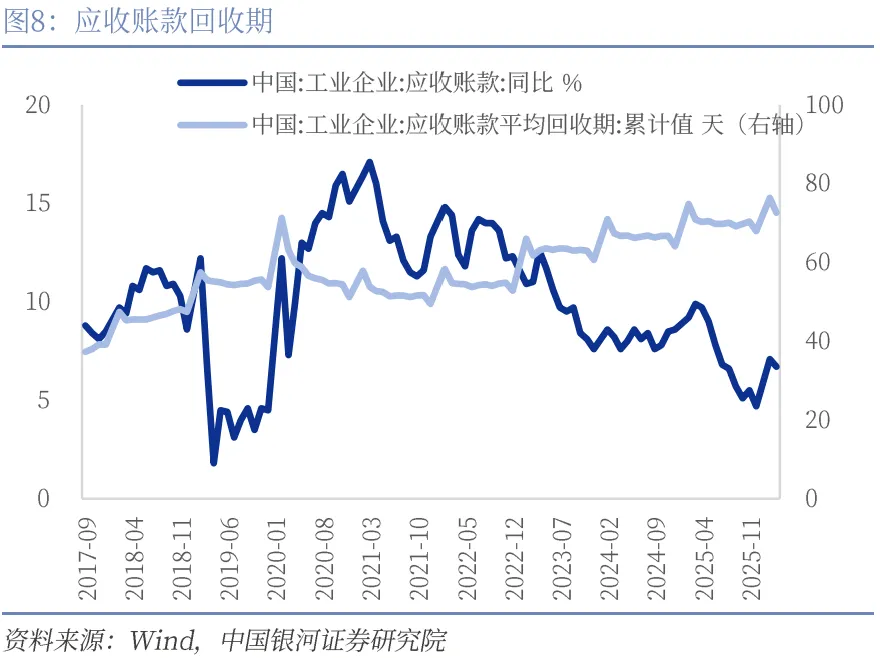 原材料涨价的压力初步体现在成本端,资金周转仍有一定压力。1—3月份,规模以上工业企业每百元营业收入中的成本为84.93元,同比减少0.44元,环比增加0.1元;同时每百元营业收入中的费用为8.50元,同比增加0.07元,环比减少0.16元。原材料涨价的压力初步体现在成本端,同时企业开始通过压降费用来对冲成本上行,反映出经营压力有所加大。 同时1—3月应收账款平均回收期为72.6天,同比增加1.3天;1—3月产成品存货周转天数为21.5天,同比增加0.3天,显示企业回款与库存消化节奏仍偏缓。