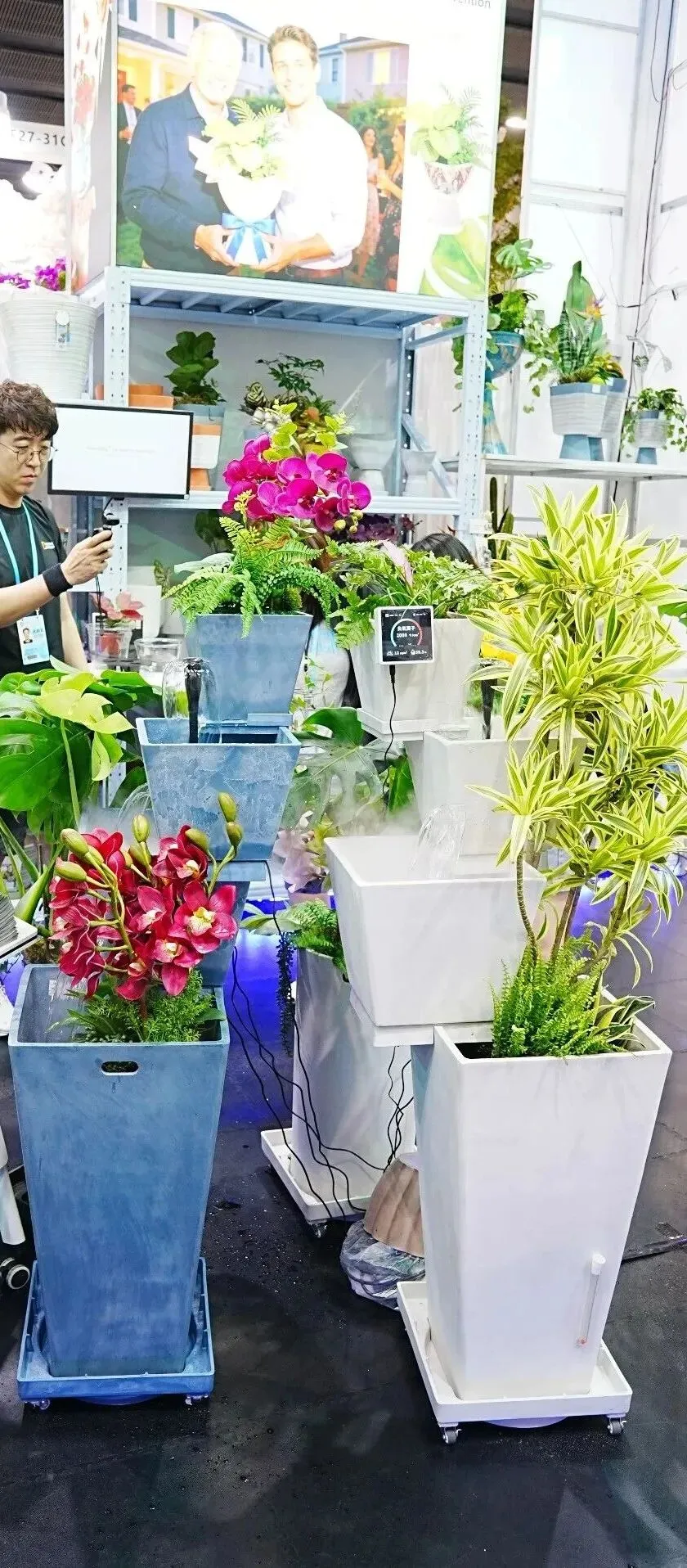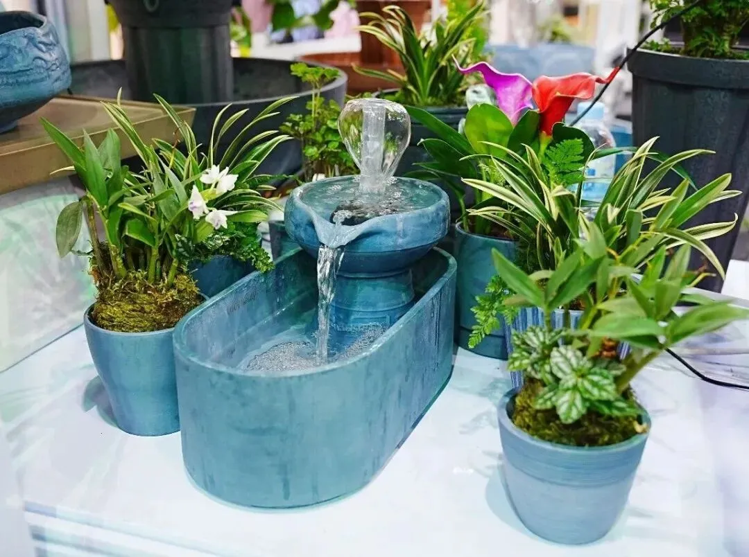 GreenShip立足千年钧瓷文化底蕴,融合自主研发黑科技,凭借负氧离子物理生成系统、虹吸自吸水专利技术、窑变艺术工艺等核心优势,打破传统园艺边界,重新定义康养花艺与高端礼赠新范式,现场收获海内外客商高度认可。
