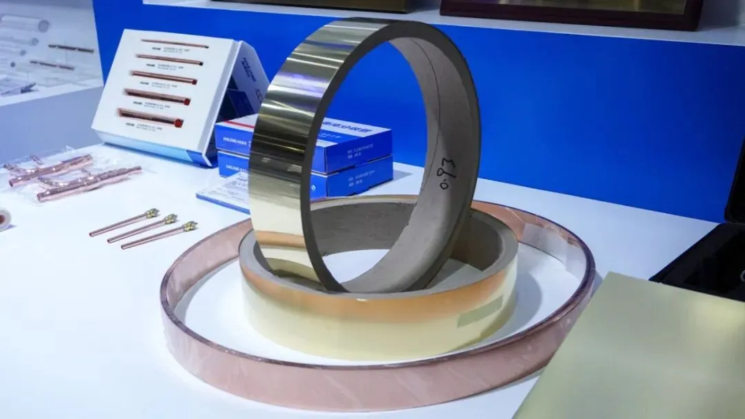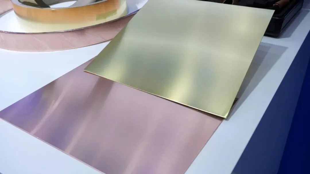 重点展示了4.5-6微米极薄锂电铜箔,具备高导电性、高抗拉强度和低粗糙度等特性,主要用于动力电池、储能电池及光伏储能领域,有助于提升电池能量密度与循环寿命,为新能源产业链提供关键材料支持。