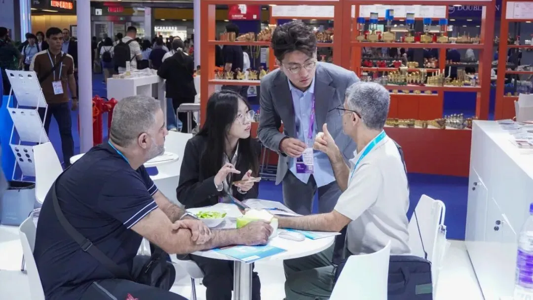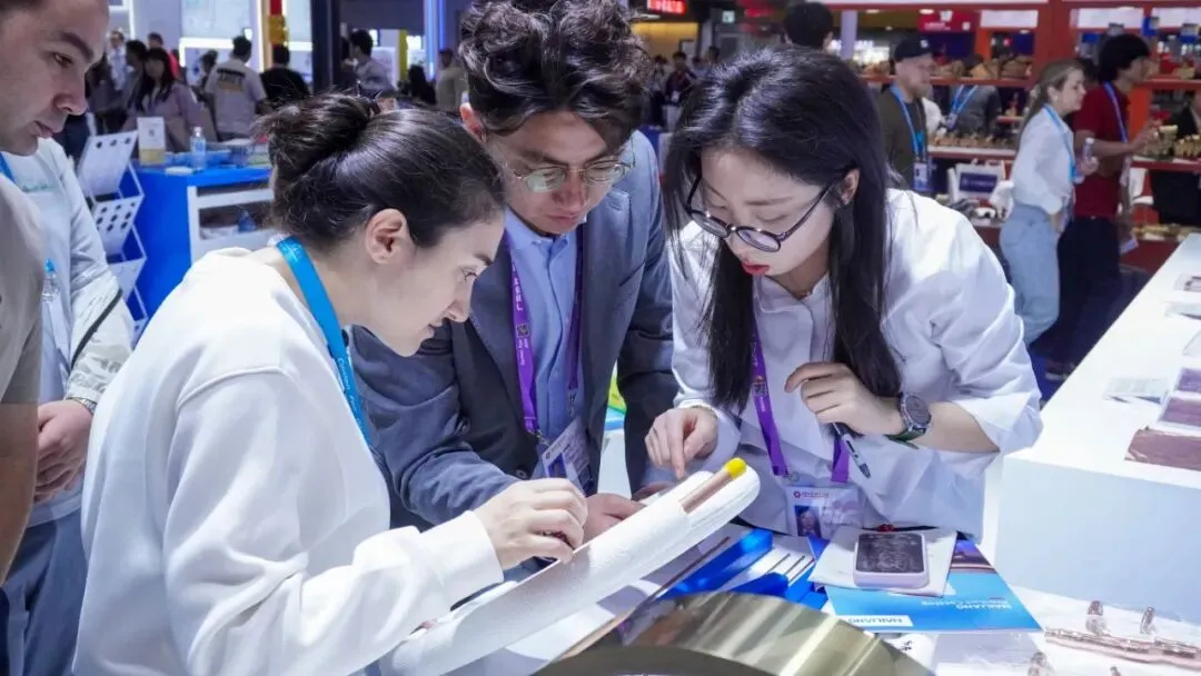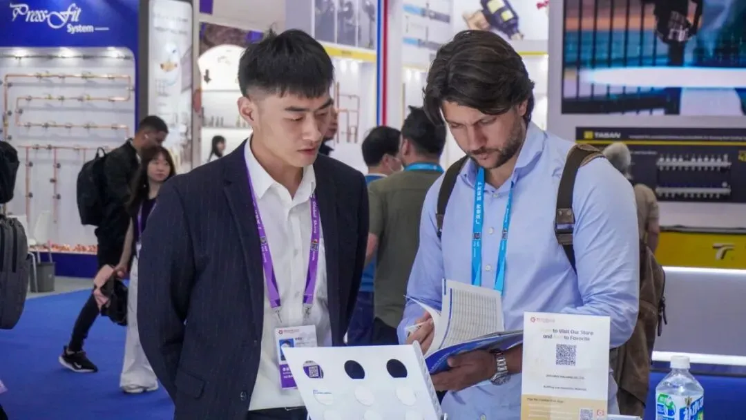 展会首日,海亮股份由11人组成的专业接待团队,为来自亚洲、欧洲、美洲、非洲及“一带一路”沿线国家的230余组采购商提供了一对一的产品选型与商务洽谈服务。