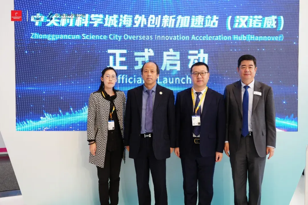 出国参展,不只是把产品摆出来给人看。展会首日,中关村科学城海外创新加速站(汉诺威)正式启动。中国工程院院士杨华勇、中关村科学城管委会产业促进五处处长孟庆文、汉诺威米兰展览(上海)有限公司总经理刘国良等共同见证。