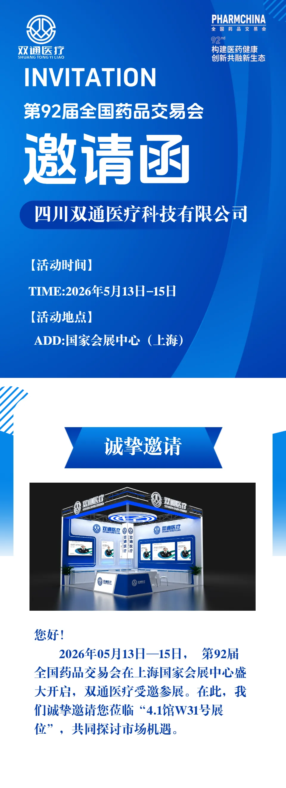 【双通医疗】第92届全国药品交易会,我们上海见!