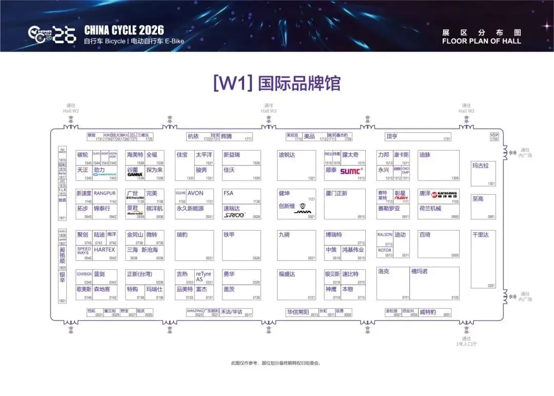 2026中国国际自行车展览会吸引全球超过1600家企业参展,展位超8000 个,总展示面积 16 万平方米。展会布局 13 个专业展馆(W1-W5、E1-E7、N1 馆),标志着中国展在上海新国际博览中心的展区布局实现全品类、全产业链覆盖的全新跨越。