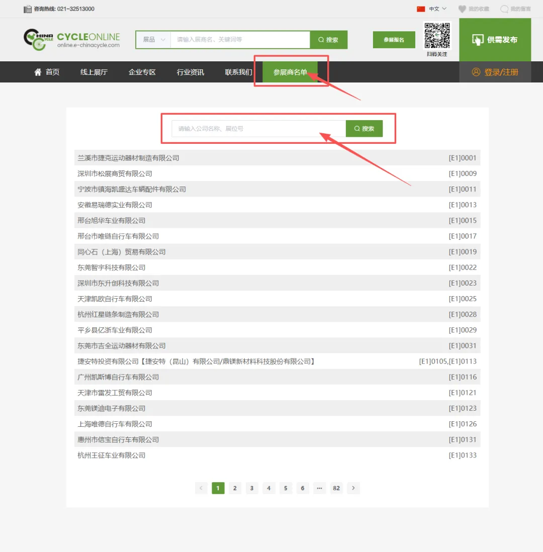 点击“参展商名录”菜单