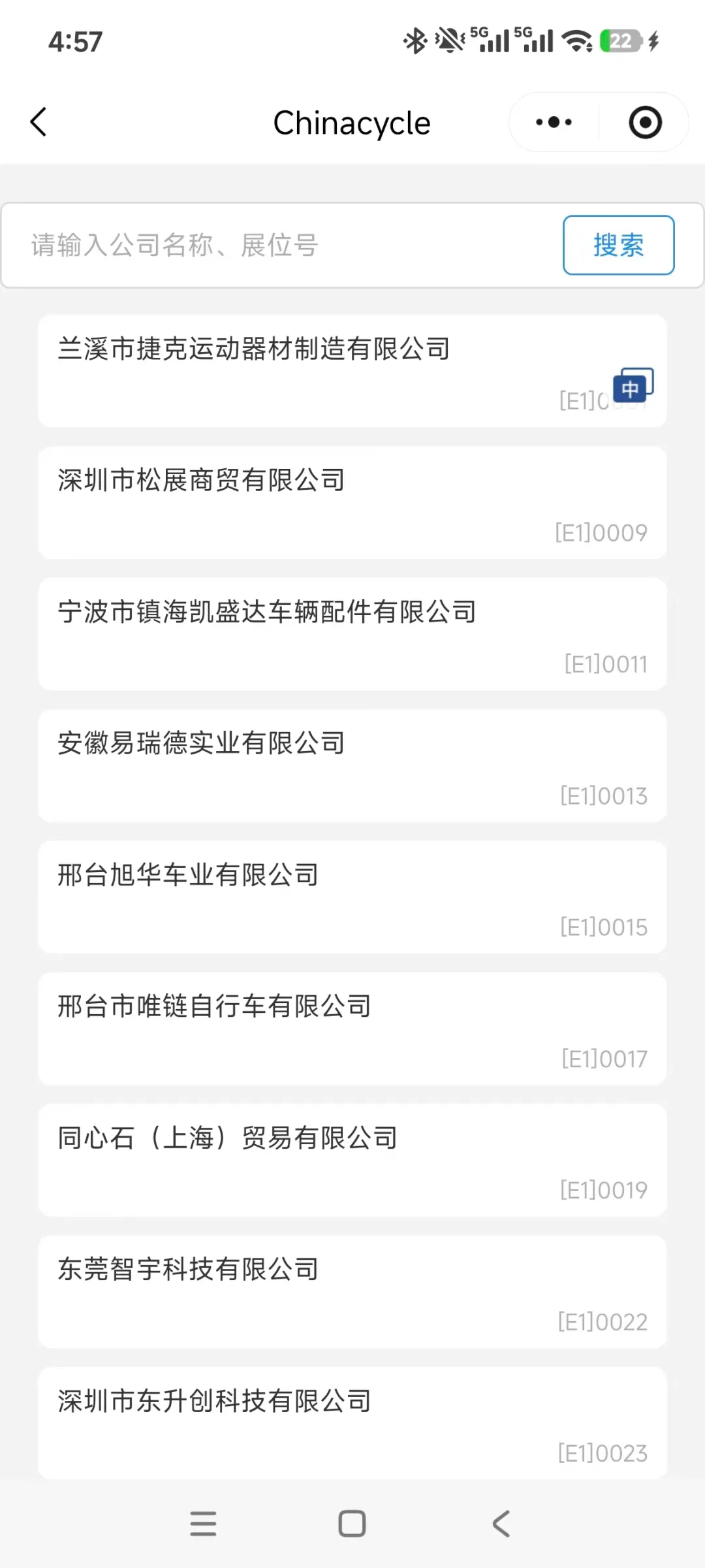 如果想知道展馆企业,只需输入对应的馆号,例如输入“E1”,就可以跳出E1馆的企业、输入“上海”,就可以跳出企业名称中带“上海”的企