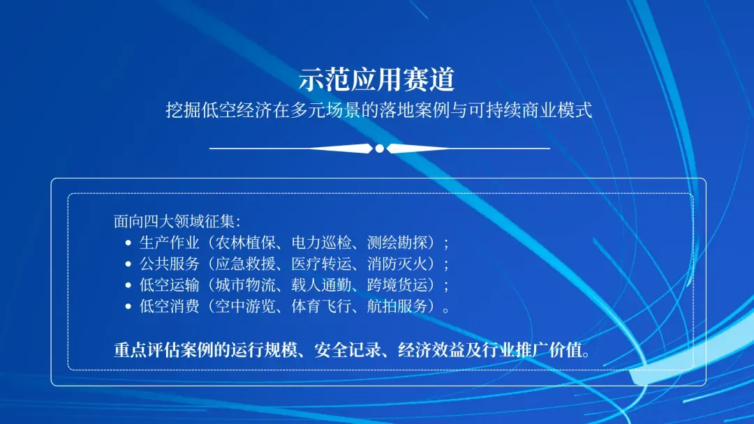 案例征集将涵盖卓越产品、创新技术、示范应用、融合生态四大领域,完整覆盖低空经济全产业链。