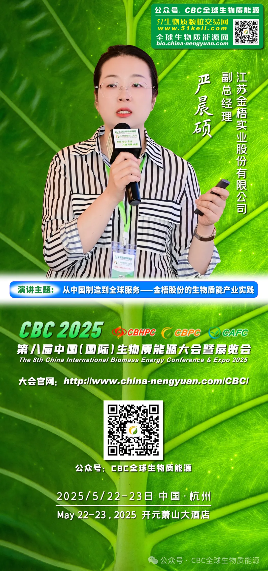 在本次演讲中,严女士将围绕“从中国制造到全球服务——金梧股份的生物质能产业实践”展开深入探讨。他将结合自身的丰富经验和前沿洞察,为我们揭示行业未来的发展趋势,分享如何在变化中抓住机遇、应对挑战。