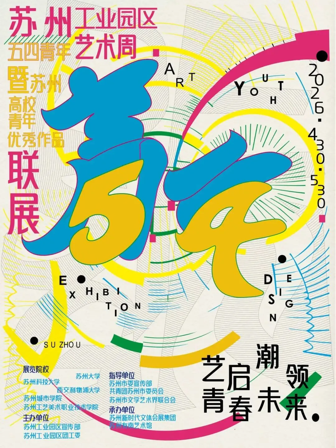 五四薪火赓续百年,青春艺韵辉映姑苏。为弘扬“爱国、进步、民主、科学”的五四精神,落实新时代美育浸润与青年艺术人才培养要求,2026苏州工业园区五四青年艺术周以“艺启青春·潮领未来”为主题,汇聚苏州高校艺术新锐力量,打造集创作展示、文化传承、校地协同于一体的青春艺术盛会,以青年之笔绘江南文脉,以创新之艺展时代担当。