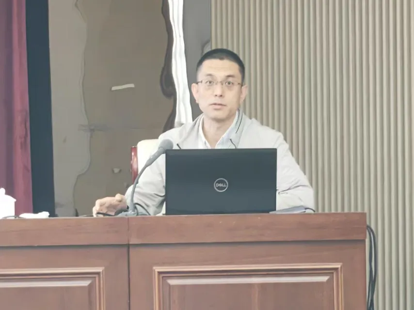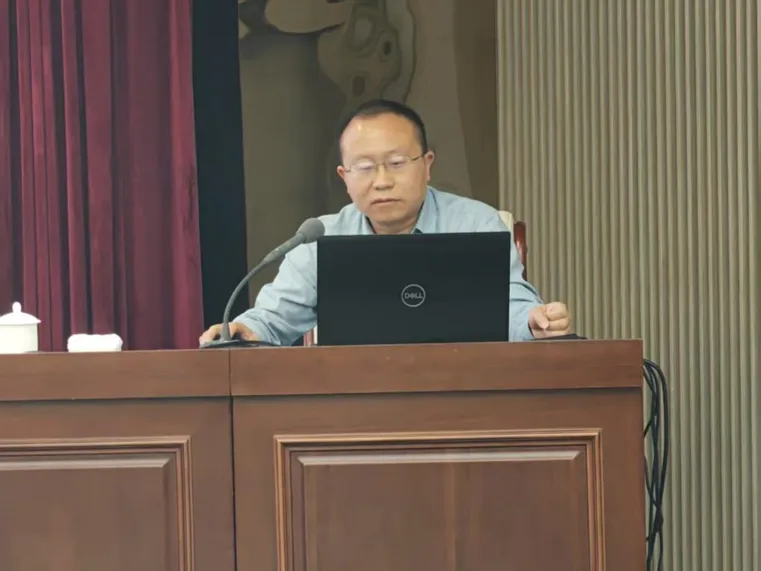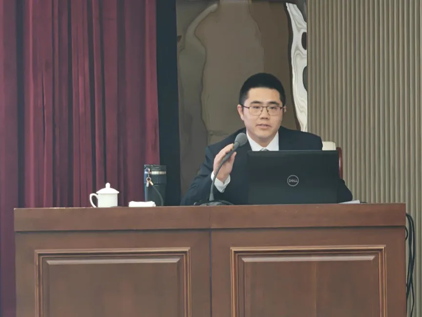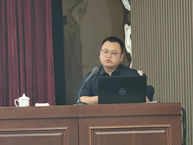 贵州福麟矿业有限公司绿色采矿工程技术研究中心主任吴立波对半水磷石膏膏体充填技术进行了分享交流。