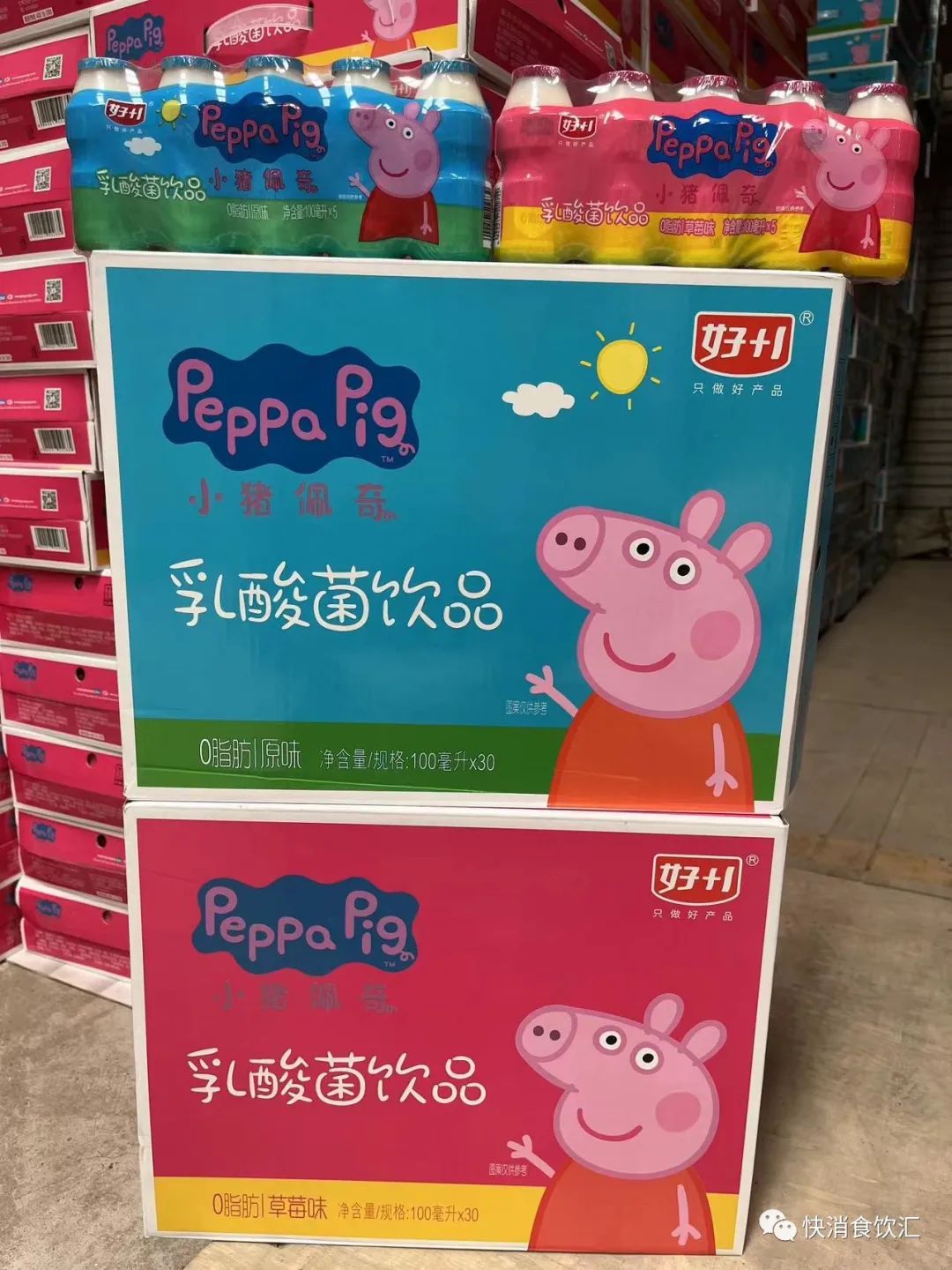 产品 :零添加玉米汁、生牛乳拌酸奶、正版授权小猪佩奇乳酸菌、果味茶等