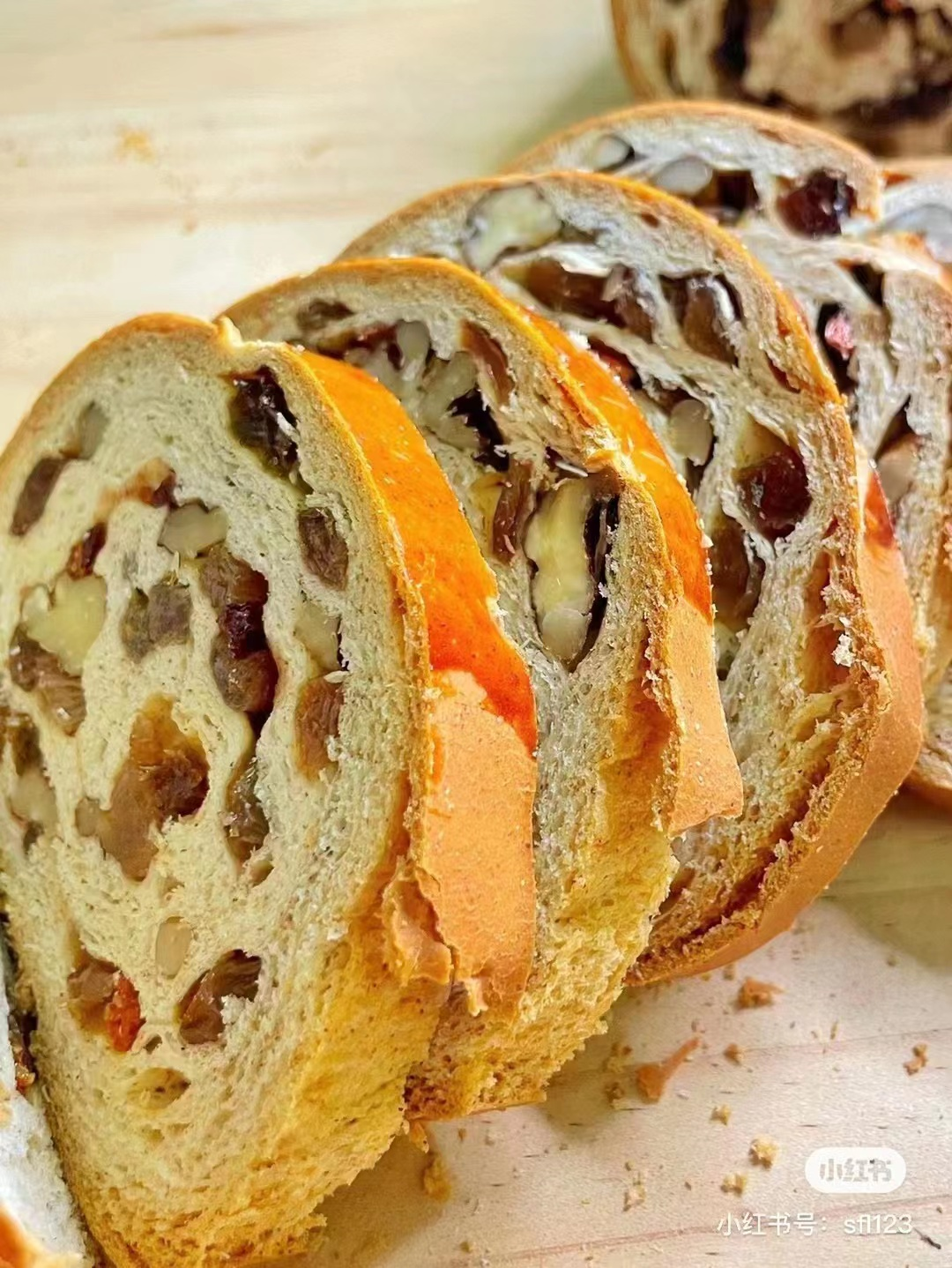 产品介绍:采用中粮集团面包专用粉、优选安佳大黄油、新西兰奶粉、核桃仁、葡萄干、全麦、黑芝麻。富含各种营养精华、切成片 显示出 各种果肉。三高人群、减肥人群的最爱产品。