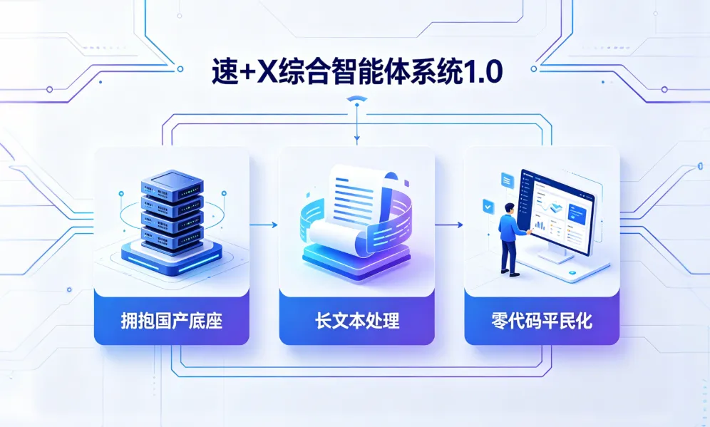 3.零代码平民化:算力再便宜,如果配置智能体的“人力成本”居高不下,依然无法普惠。速+X坚持“自然语言即代码”,让业务人员只需把需求说清楚,就能快速拉起复杂的自动化工作流。