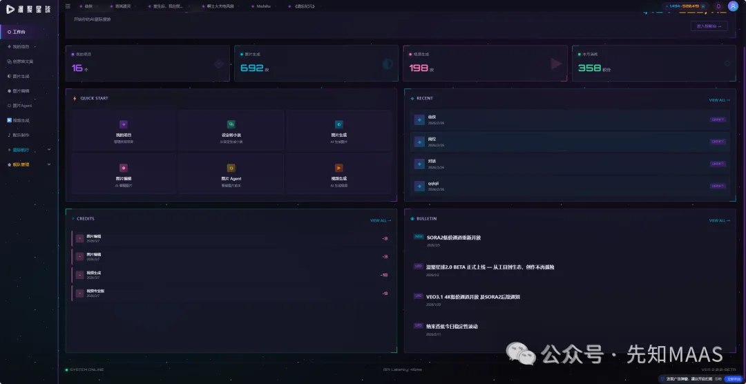 漫聚星球是先知AI旗下的一站式AI影视创作管理平台,作为母公司MaaS技术沉淀的标杆产品,致力于成为AI影视内容生产领域的"飞书"。平台已迭代2.0BETA版本,核心功能稳定运行,服务数百家企业,培养近4000名AI创作人才。