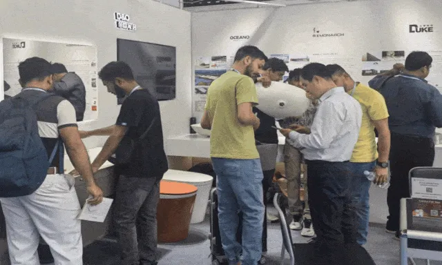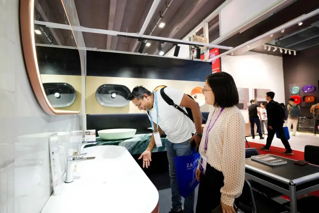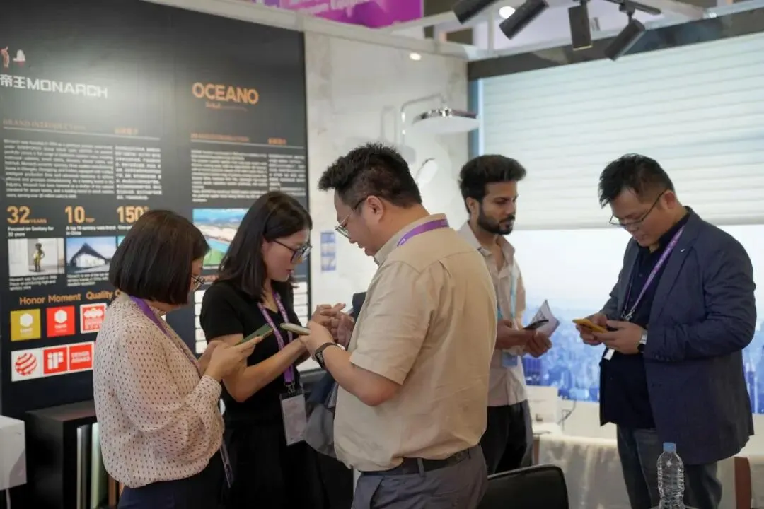 帝王洁具展位吸引国际客户驻足,现场体验产品设计与性能