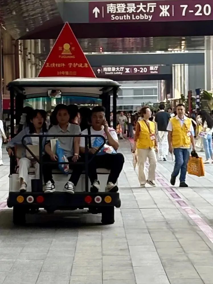 会展中心占地面积很大,各个展馆之间相隔较远。主办方服务十分贴心周到,专门安排了观光接驳车,每辆车都有专属编号,对应相应展馆。