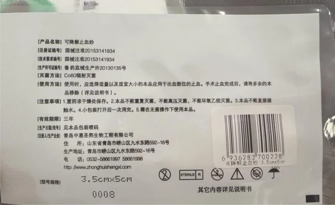 青岛中惠圣熙可降解止血纱