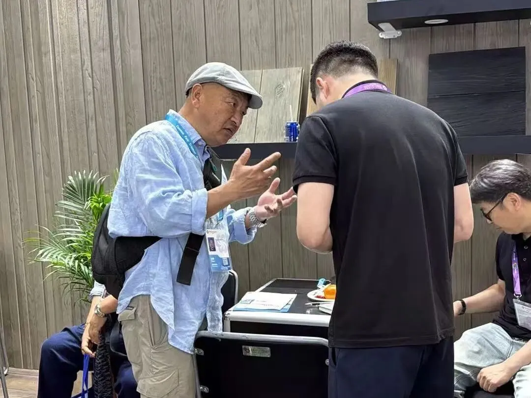也有初次到访的新朋友,在触摸过全新原料打造的板材、了解过严苛的品质把控后,当场表达了合作意愿。